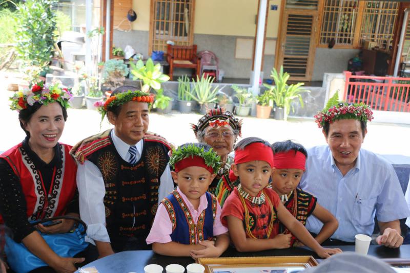 圖:馬英九對法院判決結果表示欣慰。圖為屏東縣瑪家鄉大頭目徐春美(後左三)25日過82歲生日,馬英九(右)為徐春美祝壽\中央社