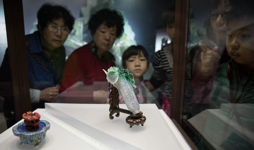 遊客們在台北故宮博物院欣賞展品資料圖片