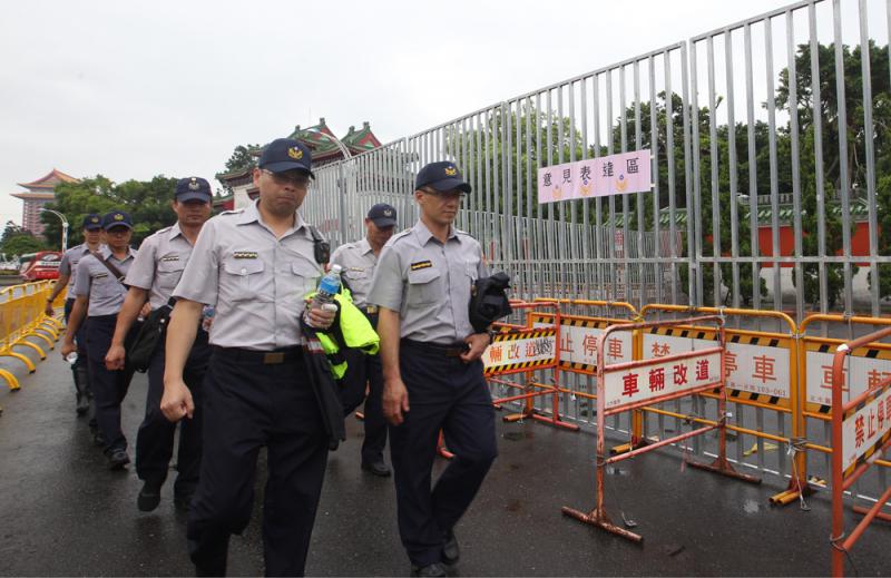 由於退休軍人當天發起陳抗,為避免抗議團體阻撓,台北市警察局特別訂製3米高的圍欄設置意見表達區,供陳抗民眾、團體在裏面抗議,並在進入忠烈祠的每個路口配備警察待命。不過當天圍欄內空空如也,完全未派上用場。台北市中山分局督察組組長潘嘉旺表示,這是基於歷次執行勤務經驗與維安需要。