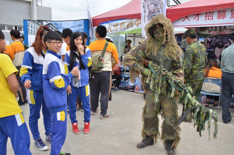 圖:近年台灣欲推行「全募兵制」,但因兵力不足已多次跳票延期。圖為台灣防務部門在台東一所學校募兵 資料圖片