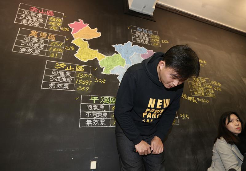 圖:16日「時代力量」立委黃國昌罷免案不通過,當晚黃現身表示虛心接受結果,並現場鞠躬向選民致意/中央社