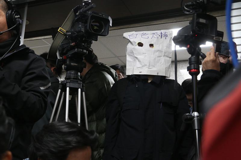 圖:台北民眾頭戴面罩聲援新黨/中央社
