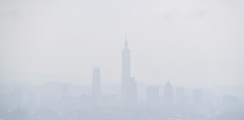 圖:24日午後從山上遠眺台北市區,籠罩在一片霧茫中。101大樓隱約可見 中央社