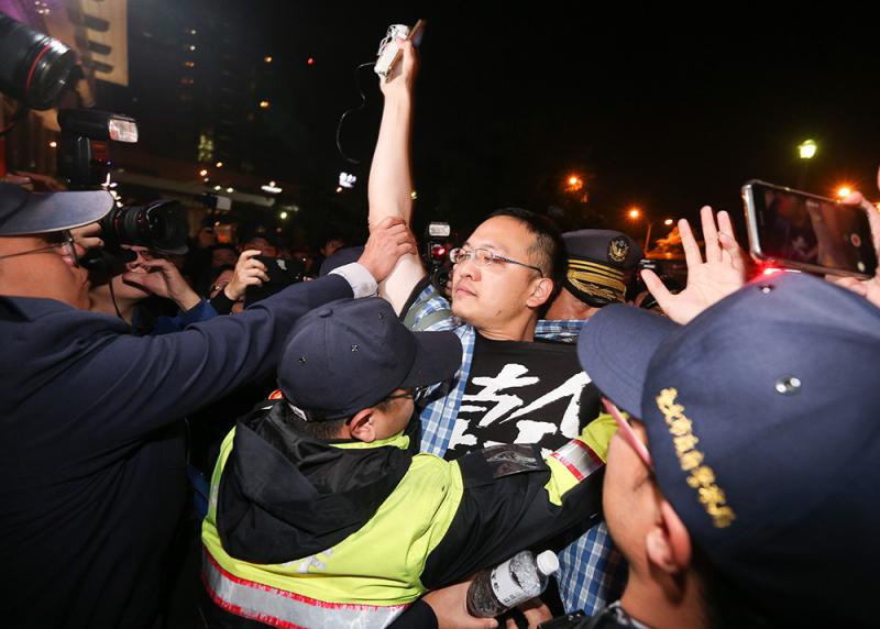 ▲台北警方24日凌晨驅離不願離去的遊行民眾 中央社