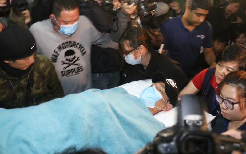 圖:劉德華在泰國意外墮馬後,於深夜乘搭醫療專機返港就醫