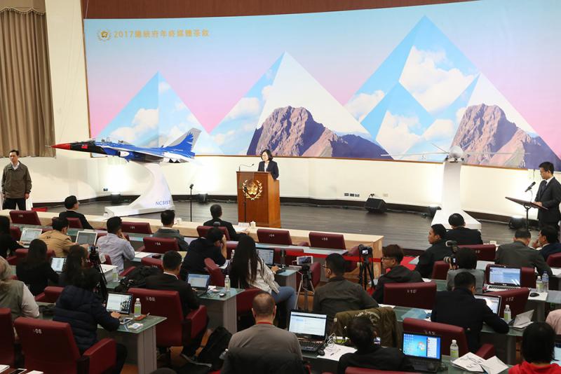 圖:蔡英文29日在「中科院」研發展示館發表年終談話 中央社