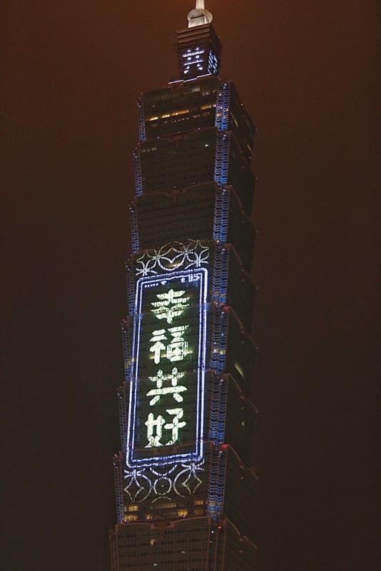 圖::台北一○一大樓晚間點亮「幸福共好」燈光,和民眾一起迎接新年 中央社