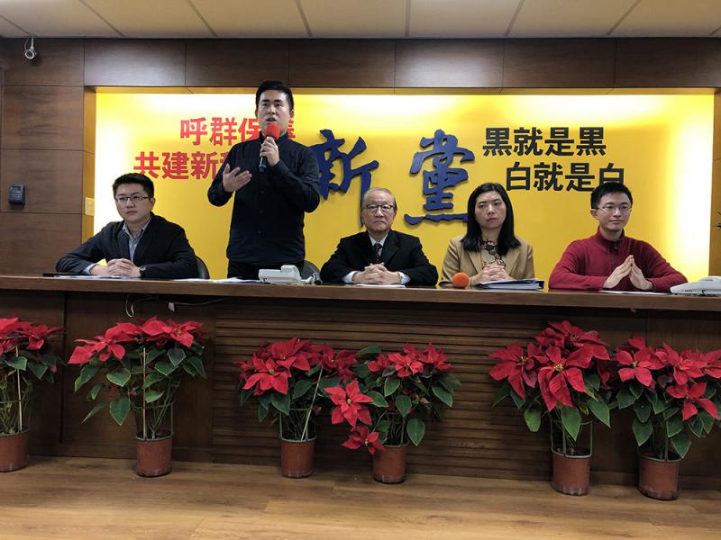 圖:新黨黨部2日召開記者會。發言人王炳忠(左二)與黨主席郁慕明(中)出席,批評檢方的指控是匪夷所思/中央社