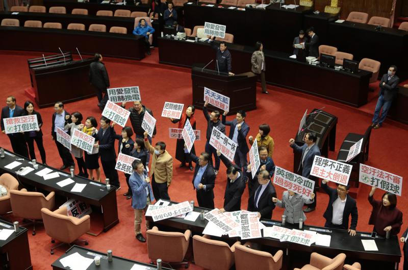 圖:台「立法院」臨時會5日召開,國民黨立委拿看板在議場內表達訴求\中央社