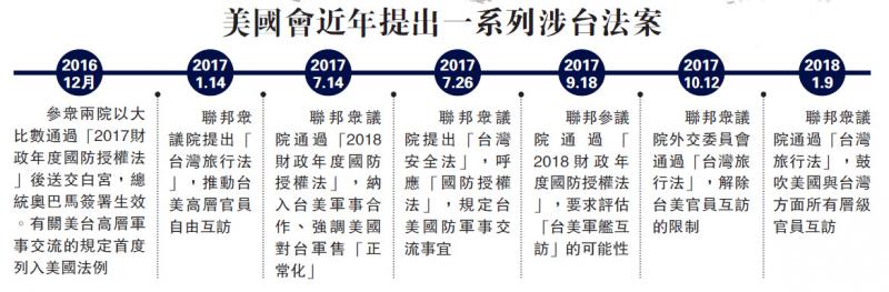 美國會近年提出一系列涉台法案