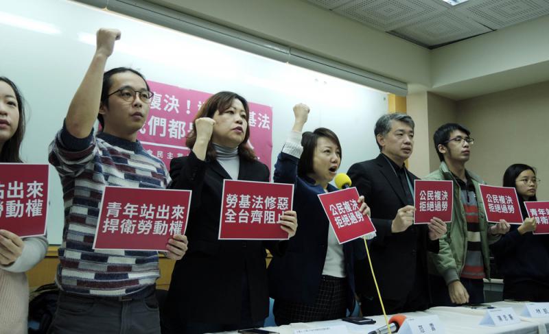 圖:台灣多個團體十二日共同發起籌組「公投複決退回勞基法連線」,希望能以公民的力量退回立院日前通過的勞基法 中央社