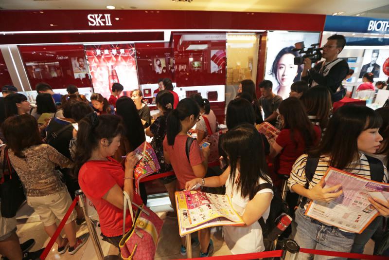圖:台灣化妝品暢銷。圖為島內百貨公司化妝品櫃枱前擠滿人/資料圖片