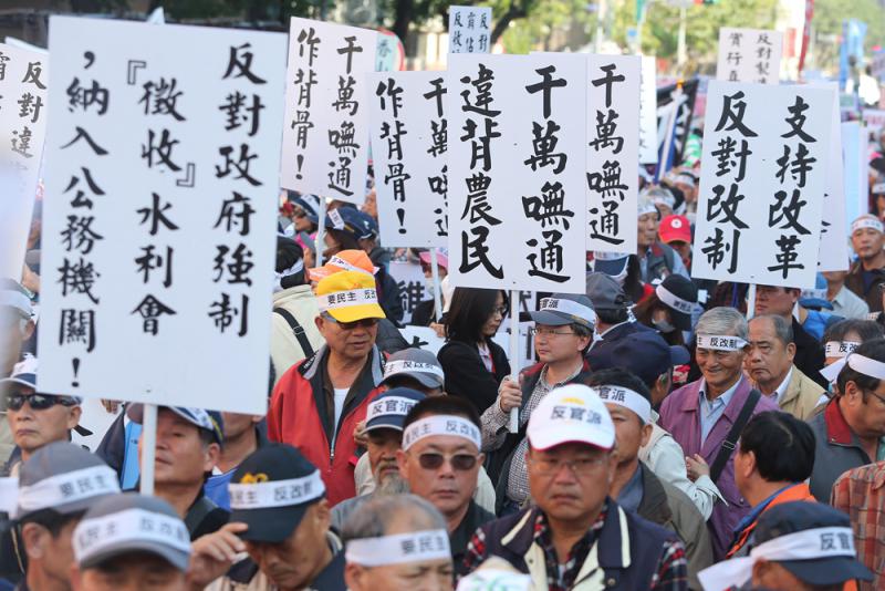 圖:台灣大批水利會成員日前抗議台當局強行把水利會改為公務機關 中央社