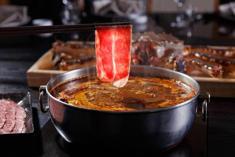 火鍋店湯底除了麻辣外還有清湯底,侍應奉上湯底時,眼看湯底不像一般麻辣湯底的油膩。Marco推薦先喝湯,因為湯底用辛香料每天熬三小時製成,入口時麻辣鮮香卻不搶喉,麻而不辣,喝起來比較舒服。而一般麻辣湯底多以牛骨或加了牛油來熬製,這個湯底沒加動物成分,所以不吃牛的客人也可以吃。