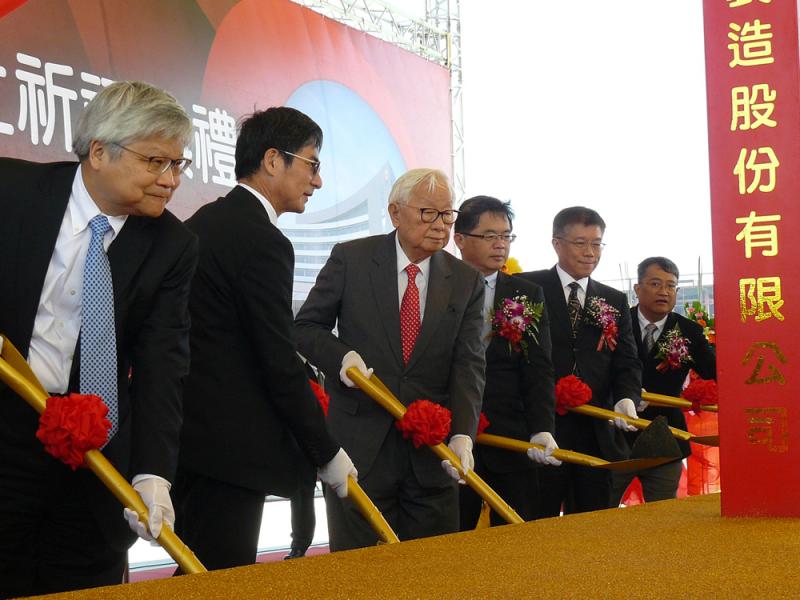 圖:台積電5納米晶圓廠26日在台南動土,董事長張忠謀(左三)出席 中央社