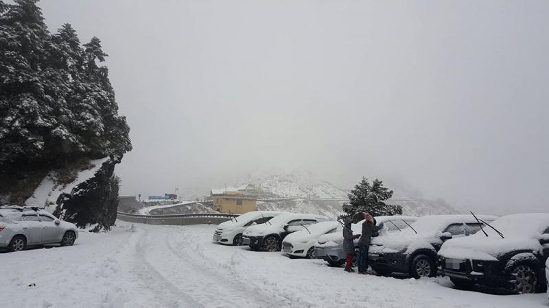 強烈冷氣團配合水氣,合歡山區31日深夜至1日上午斷續降雪,車輛、山坡岩石、道路都被明顯白雪覆蓋,截至上午積雪10厘米以上。林務局表示,這波降雪創入冬以來最大雪量,若低溫持續,積雪結冰可保持到本周周末。