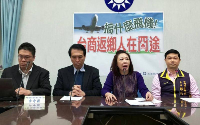 圖:國民黨立委5日舉行記者會,批評台當局不核准大陸航空公司176班春節加班機,損害台商回鄉過年的權益\聯合報