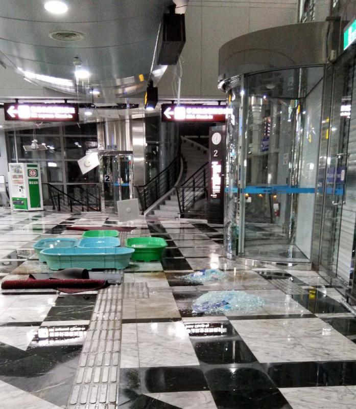 圖:花蓮機場於地震期間天花損毀\受訪者提供