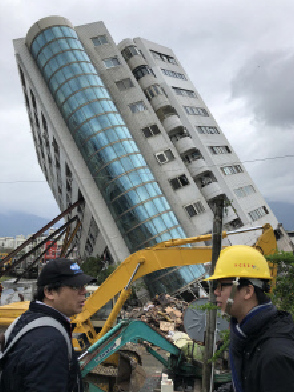 雲門翠堤大樓嚴重傾斜,隨時倒塌(台灣「中央社」圖片)