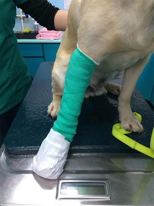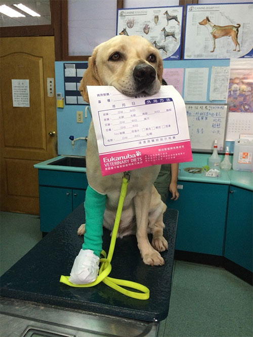 大公網訊 大公文匯全媒體綜合報道,台中市消防局搜救犬隊小隊長「鐵雄」因支援花蓮地震搜救負傷,今日(10日)由領犬員帶往中興大學獸醫院診治。消防局拍下牠右腳包紮、叼着診療單的畫面,樣子惹人憐愛。鐵雄8日因右耳急性發炎就醫,今日又發現右前腳因出勤踩到汽油引發疼痛。醫生已為牠包紮用藥,下周三覆診。