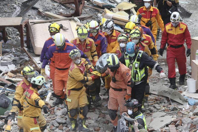圖:花蓮地震災區雲門翠堤大樓持續搜救中,救援人員十日陸續找到三具陸客的遺體\中央社