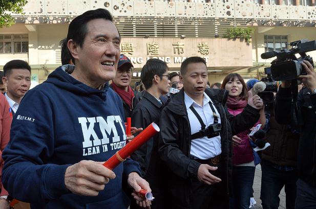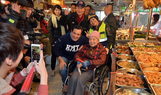 馬英九今天到台北興隆市場買了水餃、滷味、青菜、魚等年菜。(台灣「中央社」)