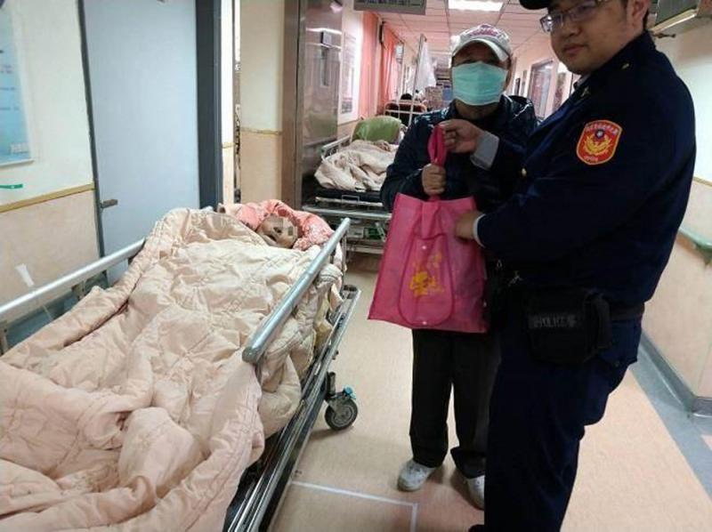 圖:警察將慰問物資送給前來醫院探望張老先生的友人 網絡圖片