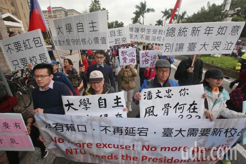 圖:台大師生21日走上街頭,抗議民進黨當局阻撓台大新校長管中閔上任\聯合報