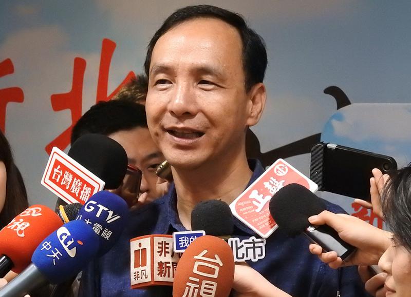 圖:新北市長朱立倫說,希望進行正面選舉,勿抹黑造謠 中央社
