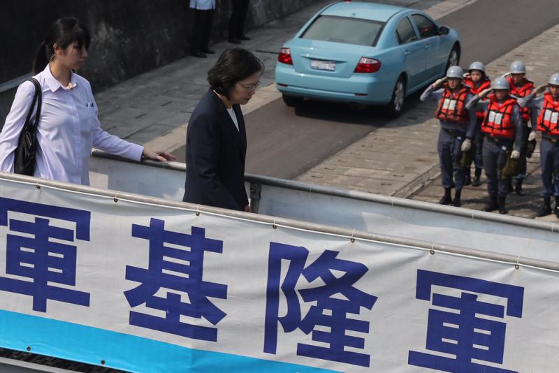 圖:台灣當局領導人蔡英文13日登艦出海視導艦隊操演/中央社
