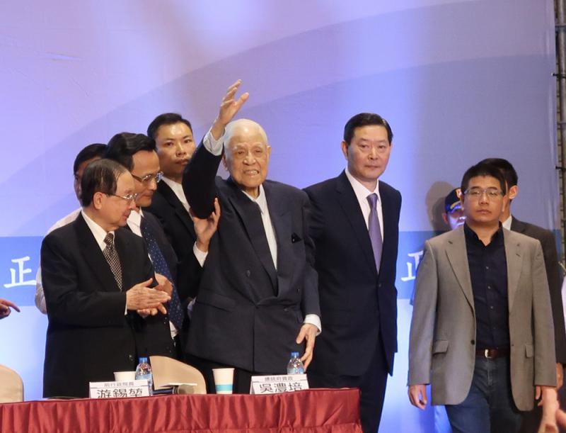 圖:95歲風燭殘年的李登輝(中)日前成立的「喜樂島聯盟」高叫明年4月「獨立公投」/資料圖片