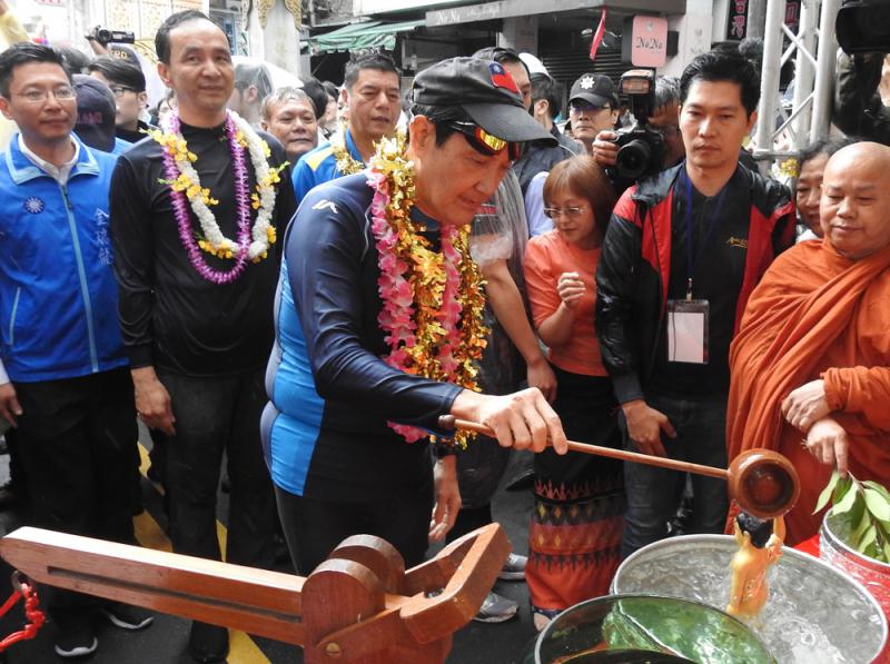 圖:馬英九參加潑水節後浴佛祈福 中央社