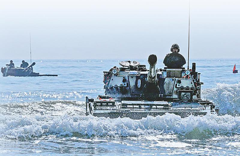 圖:解放軍18日在台海進行實彈演習。圖為近日陸軍官兵進行海上專業訓練 網絡圖片