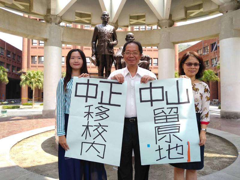 因應學生提案,高雄中山大學經多次公聽會及校務會議討論、網絡投票,二十日宣布孫中山銅像不動留在原地,蔣介石立像搬移至校內其他地方。/中央社