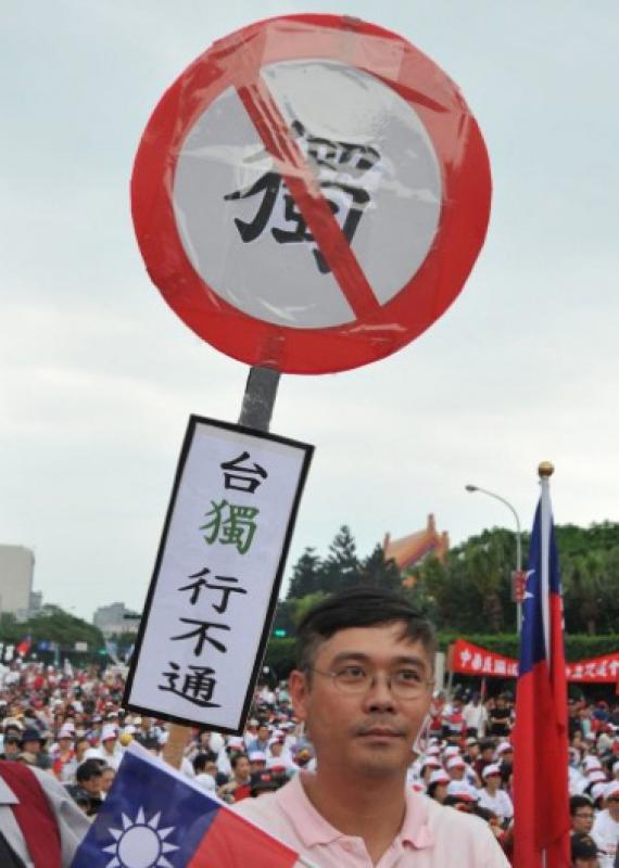 圖:台灣主流民意不支持「台獨」。圖為島內民眾遊行時舉着反「台獨」標語 資料圖片