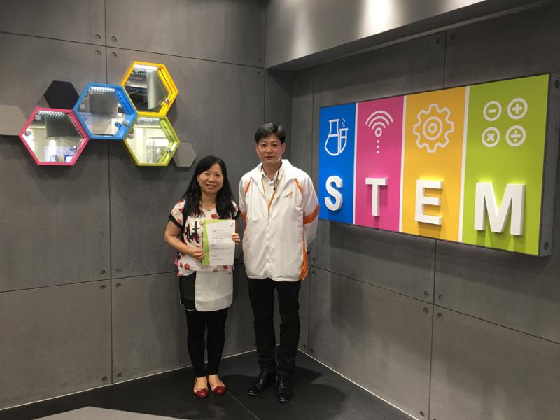 圖:宋燕玲(左)參觀VTC STEM教育中心及完成3D打印工作坊後,與導師合照