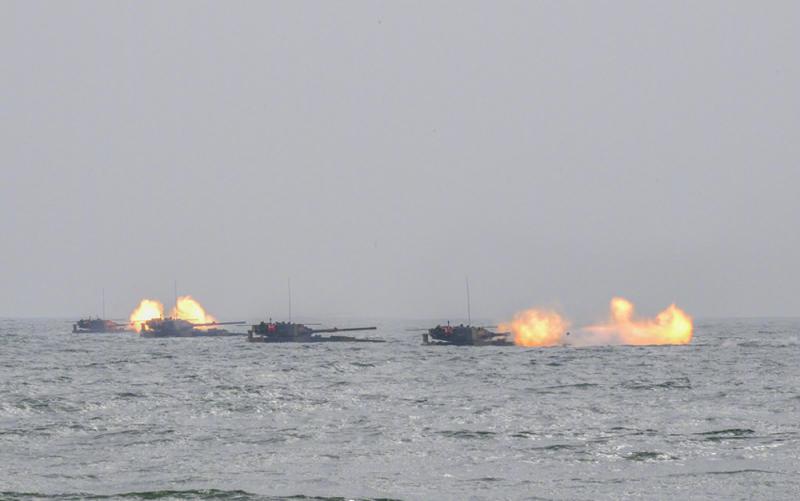 中國軍網官方微博「軍報記者」3日發布組圖照片,內容為陸軍第73集團軍某合成旅在東海某海域開展實彈射擊,加強實戰化訓練。報道稱,數台兩棲裝甲突擊車、兩棲裝甲步戰車,如戰神般怒吼,發發炮彈直擊目標。
