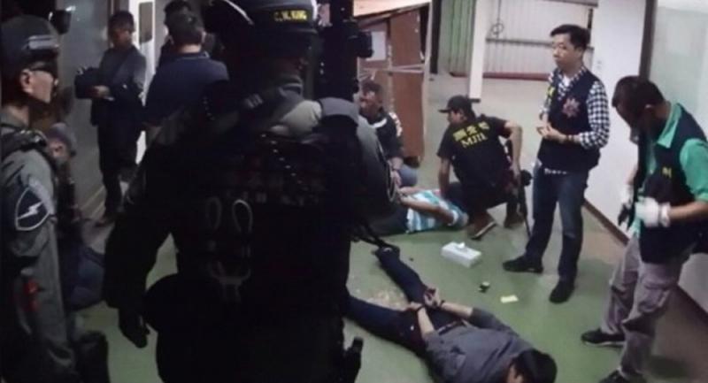 圖:警方為免打草驚蛇,發現槍彈後,再重新封膜讓注塑機正常出貨。圖為埋伏警員逮捕嫌犯畫面/網絡圖片