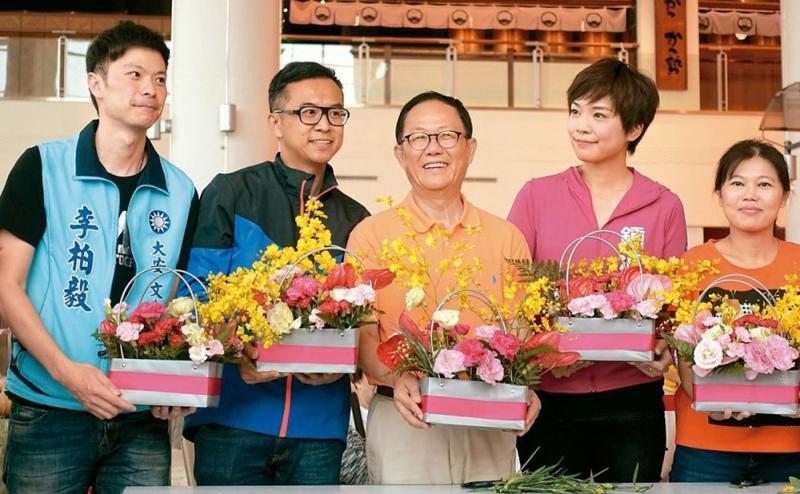 圖:國民黨台北市長參選人丁守中(中)13日為新人輔選/聯合報