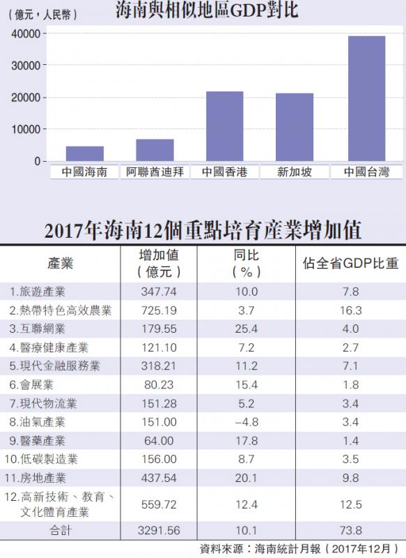 2017年海南12個重點培育產業增加值