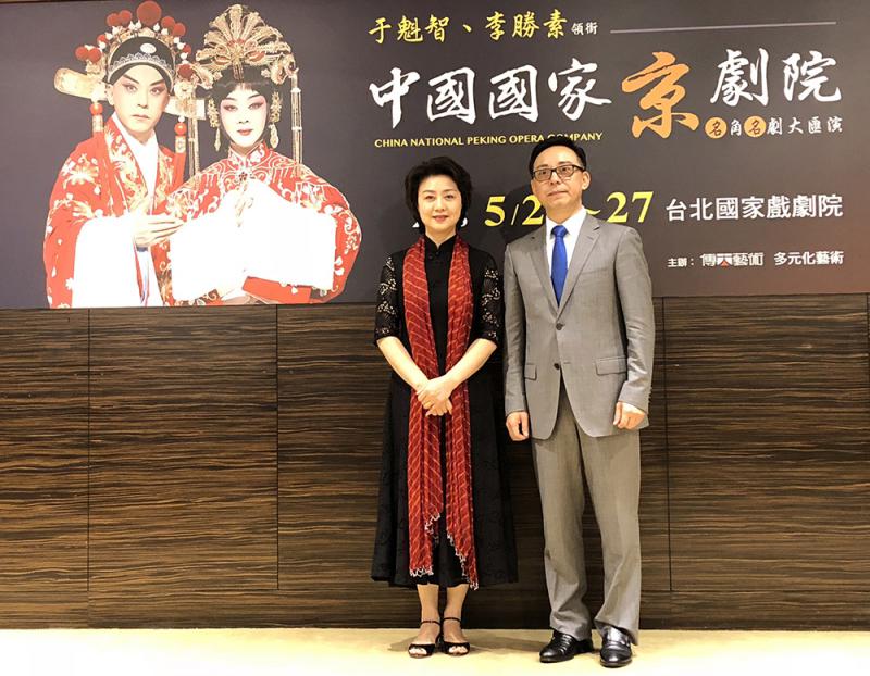 圖:國家京劇院的當家名角于魁智(右)與李勝素(左)抵台\中央社
