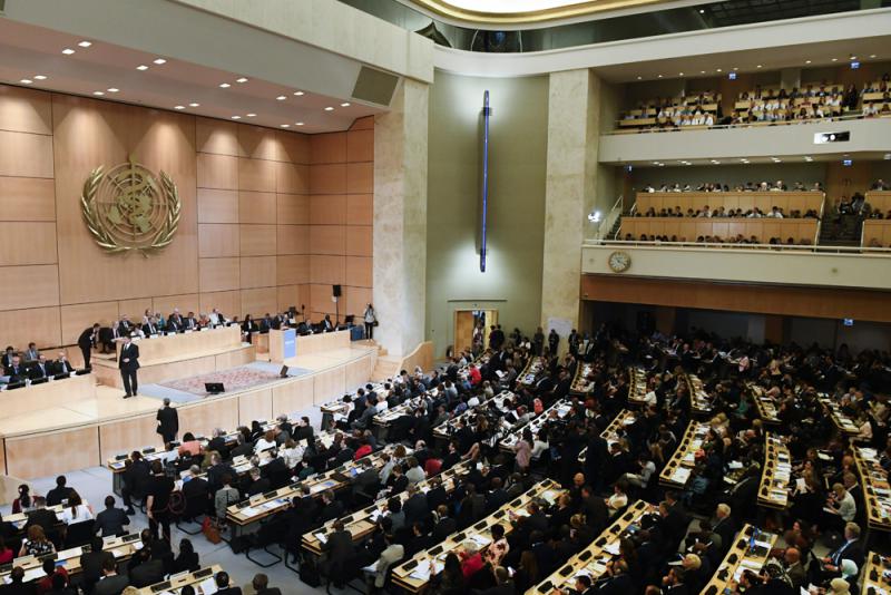 圖:在瑞士日內瓦萬國宮,與會代表日前出席世界衛生大會\新華社