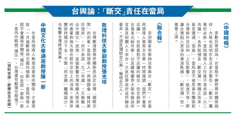 台輿論:「斷交」責任在當局