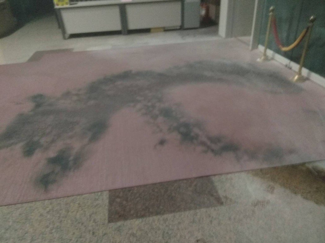 國民黨中央黨部一樓大廳地毯被燒毀(網絡圖片)