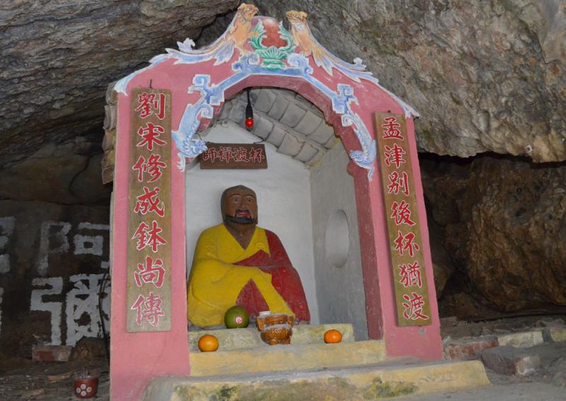 圖:屯門青山寺的杯渡禪師雕像