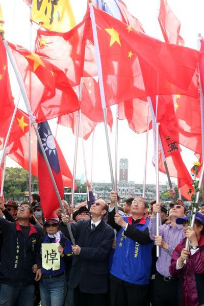 台灣團體舉五星紅旗在台北示威(聯合報資料照片)