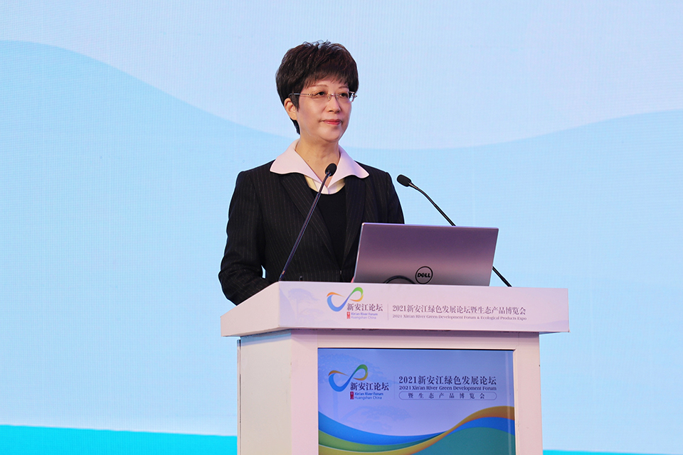 她說,在這背後,是黃山人民牢記習近平總書記「避免重蹈先污染後治理覆轍」重要指示的自覺堅守,是全市上下像保護眼睛一樣保護生態環境的不變初心:我們以壯士斷腕的決心淘汰搬遷沿江企業和項目,以敢於亮劍的勇氣完成入河排污口改造和支流整治,以造福一方的擔當率先建成全域垃圾智能化收轉運體系,以常態長效的機制創新農藥集中配送和減肥降藥,以久久為功的定力推進植樹造林和水源涵養,以互利共贏的精神推動上下遊聯保共治……如今,新安江每年向千島湖輸送約70億立方米乾淨水,成為全國水質最好的河流之一,新安江模式成為新時代生態文明的生動註解。