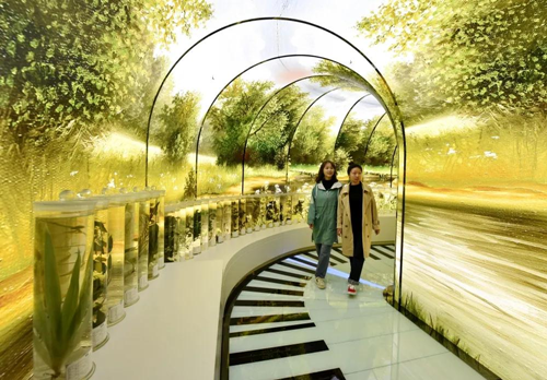遊客走進巢湖四季「隧道」,地面猶如鋼琴黑白鍵,腳踩可以變換顏色