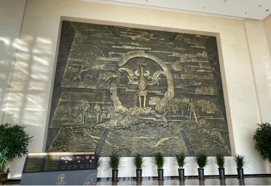 博物館大門,展示着一幅凝聚着巢湖獨特人文氣息和歷史文化特色的銅雕壁畫。