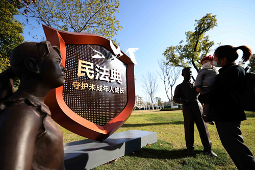 據了解,為貫徹落實習近平總書記關於民法典學習宣傳的重要指示精神,落實國家「八五」普法規劃中關於建好用好民法典主題園的要求,合肥市司法局、市普法辦選址瑤海區花衝公園,市、區攜手共同建設全省首個民法典主題園。主題園覆蓋面積約為1萬平方米,以「典亮美好生活」為主題,在不破壞花衝公園原有設施和自然景觀的前提下,建設民法典宣傳雕塑、景觀小品、宣傳標識等11處法治宣傳設施,將民法人物、民法典發展歷程、民法典七大編的主要內容等一一呈現,為廣大市民提供了一個「沉浸式」的民法典普法陣地。